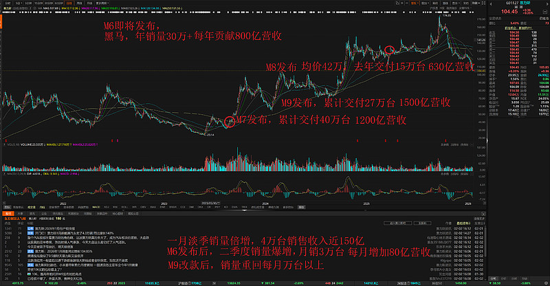 M6被余总定义为黑马,看来此前预估常态月销2万台还是定低了一些,至少应该超越M7,交付量超3万台。