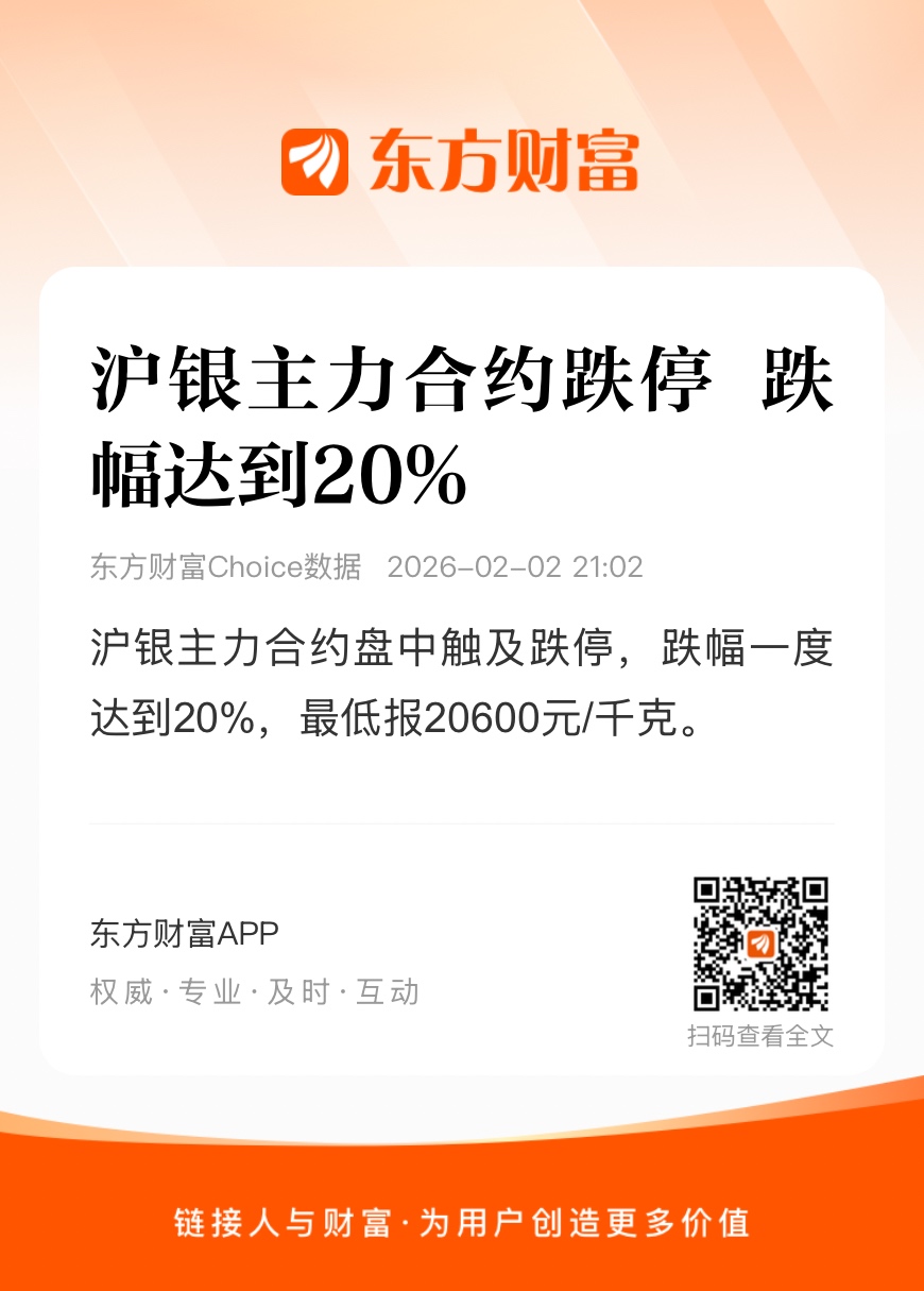 国内期货市场方面,在白天十余个品种跌停后,夜盘多数期货品种低开,其中,上期所沪银期货低开低走,一度触及跌停,最低报20600元/千克。