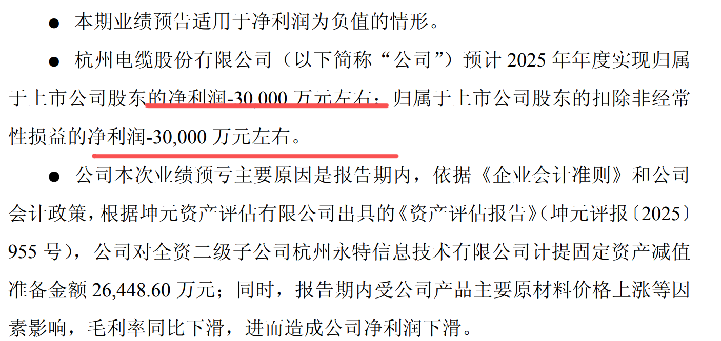 杭电股份,2025年公司亏损了3亿元。