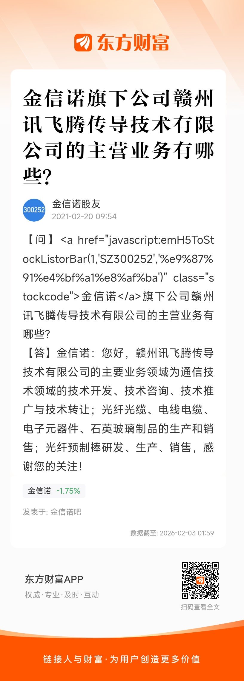 金信诺旗下公司赣州讯飞腾传导技术有限公司的主营业务有哪些?