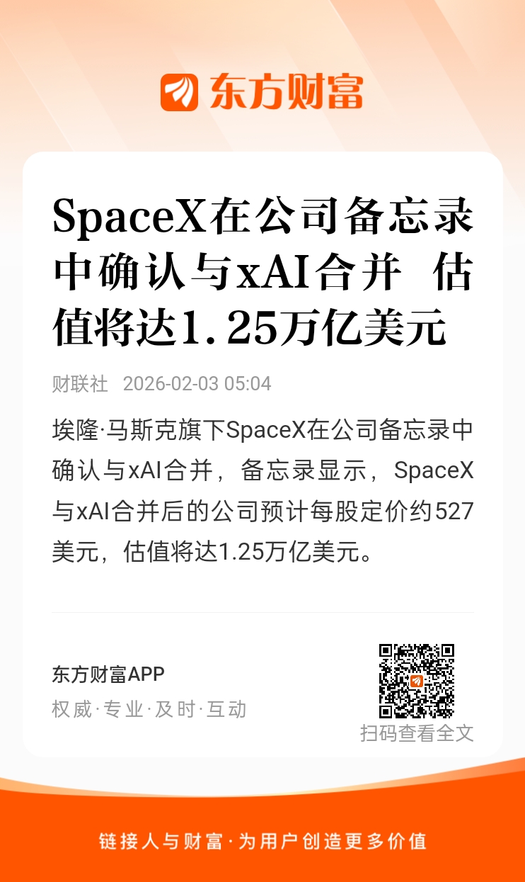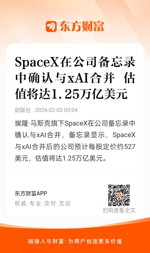 官宣!SpaceX、xAI合并!据称估值1.25万亿美元
