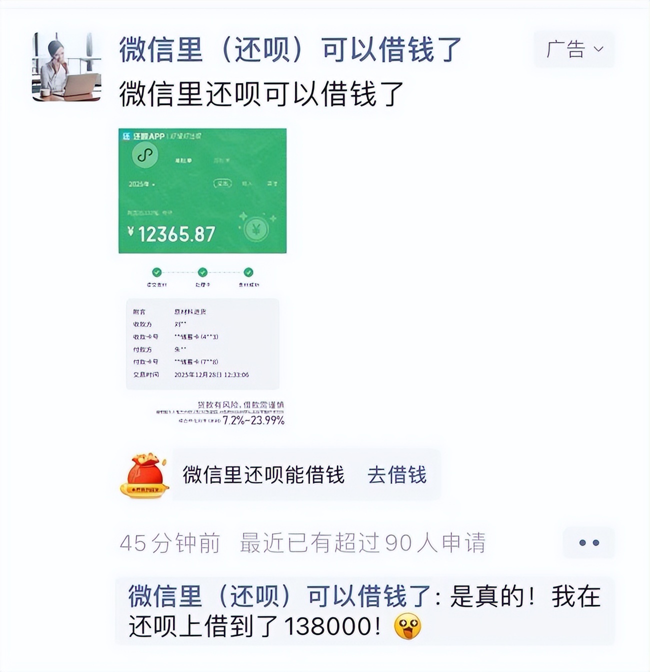 尽管“还呗”在公开渠道宣称已将利率上限调整至23.99%,但转型的阵痛远比想象中剧烈。消费者的投诉揭示了冰山一角:大量借款人反映实际年化利率仍高达35.99%,甚至要求退还多收利息。这反映出平台在存量资产消化和新资产定价上的巨大矛盾。