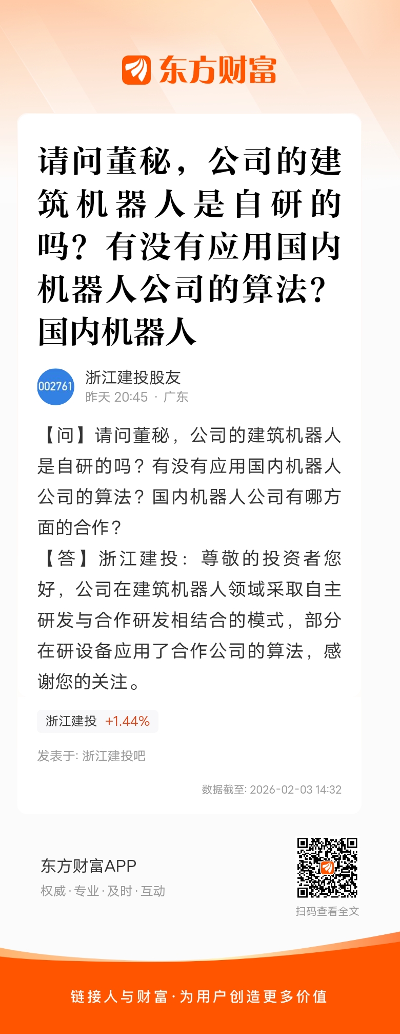 请问董秘,公司的建筑机器人是自研的吗?有没有应用国内机器人公司的算法?国内机器人公司有哪方面的合作?