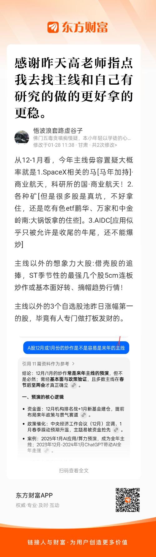 从12-1月看,今年主线毋容置疑大概率就是1.SpaceX相关的马[马年加持]·商业航天,科研所的国·商业航天!2.各种矿[但是很多股是真坑,不好拿住,还是吃有色etf鹏华、万家和中金岭南:大锅饭拿的住些]。3.AIDC[应用似乎只被允许是收尾的牛尾,还不能爆炒]