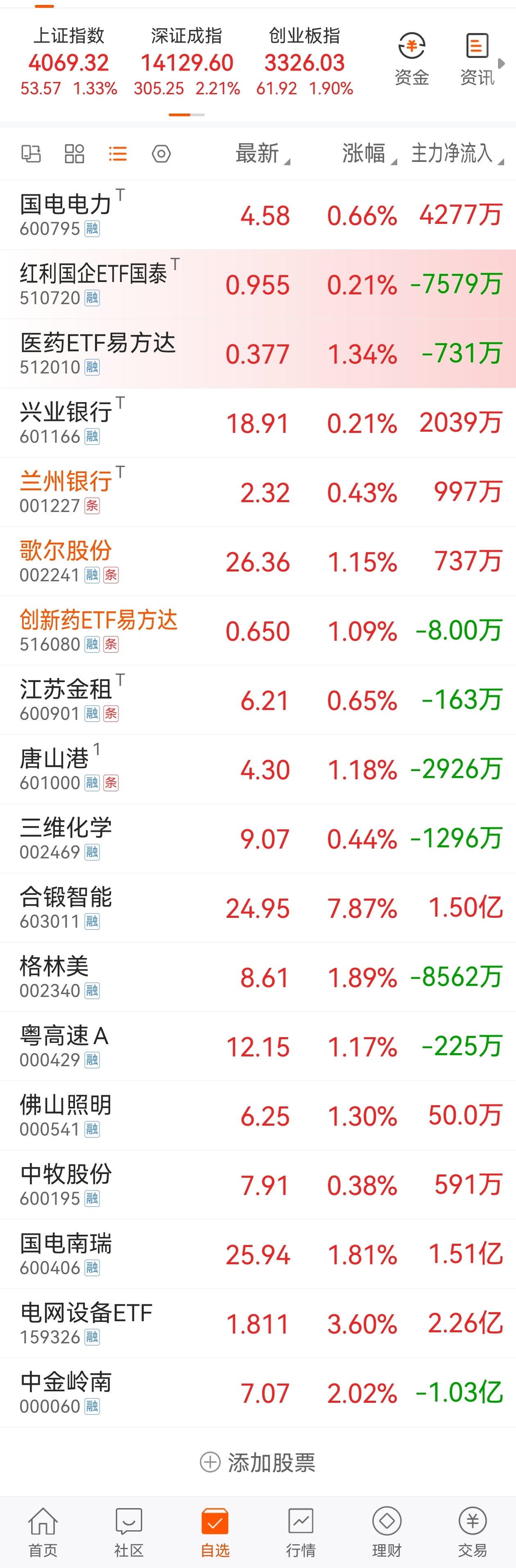 虽然全红,但又好像和我的关系不太大。账户里是绿的依然绿,是红的也就是简单地红,没啥惊喜!#炒股日记#