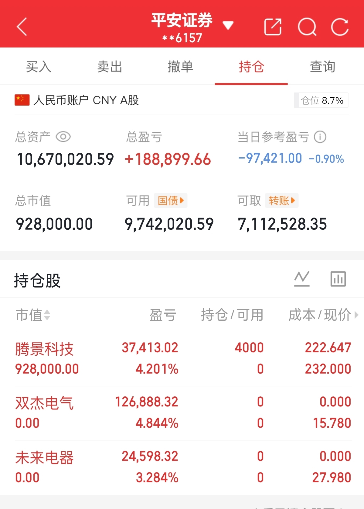 今天分享我的上车$腾景科技 sh688695$ 卖出$双杰电气 sz300444$ $未来电器 sz301386$,水涨船高结束稳定,
