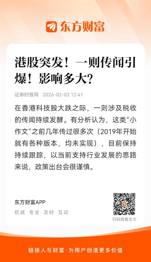 那么,究竟发生了什么?在香港科技股大跌之际,一则涉及税收的传闻持续发酵。有分析认为,这类“小作文”之前几年传过很多次(2019年开始就有各种版本,均未实现),目前保持持续跟踪,以当前支持行业发展的思路来说,政策出台会很谨慎。