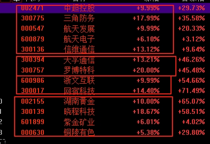 4个框分别是商业航天,光通信,AI应用,黄金概念