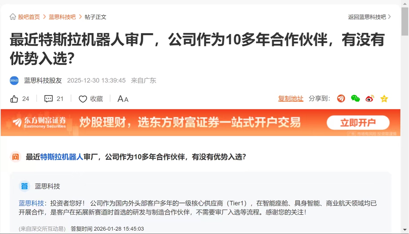 针对该传闻,21快讯记者以投资者身份致电光伏组件龙头晶科能源核实,接线工作人员回应称,公司近期确实与马斯克团队相关考察团有过接触,考察团对公司的技术储备、生产设备等进行了了解,但合作意向及具体考察细节不便透露。该工作人员同时透露:“国内主流光伏企业也均有考察”。