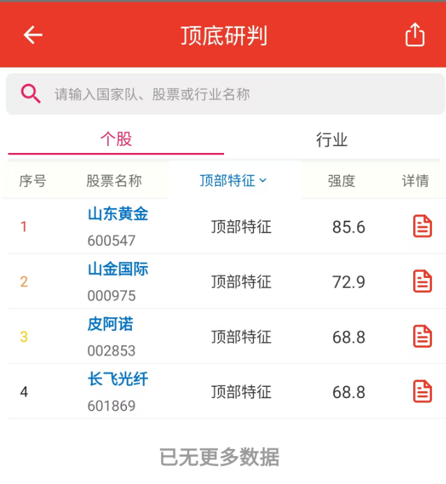 @山东黄金600547@皮阿诺002853@长飞光纤601869目前已出现顶部,