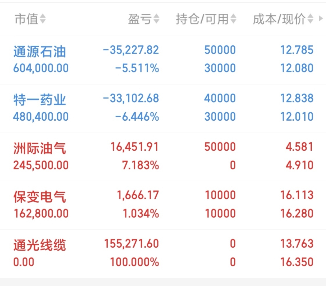 早盘操作太秀了!果断清掉通光线缆,杀进洲际油气,表现超给力,尾盘直接封板~ 保变电气捂继续持有,预期还在;通源石油、特一药业补了仓。跟上这波节奏的有没有?评论区唠唠,点赞走一波~