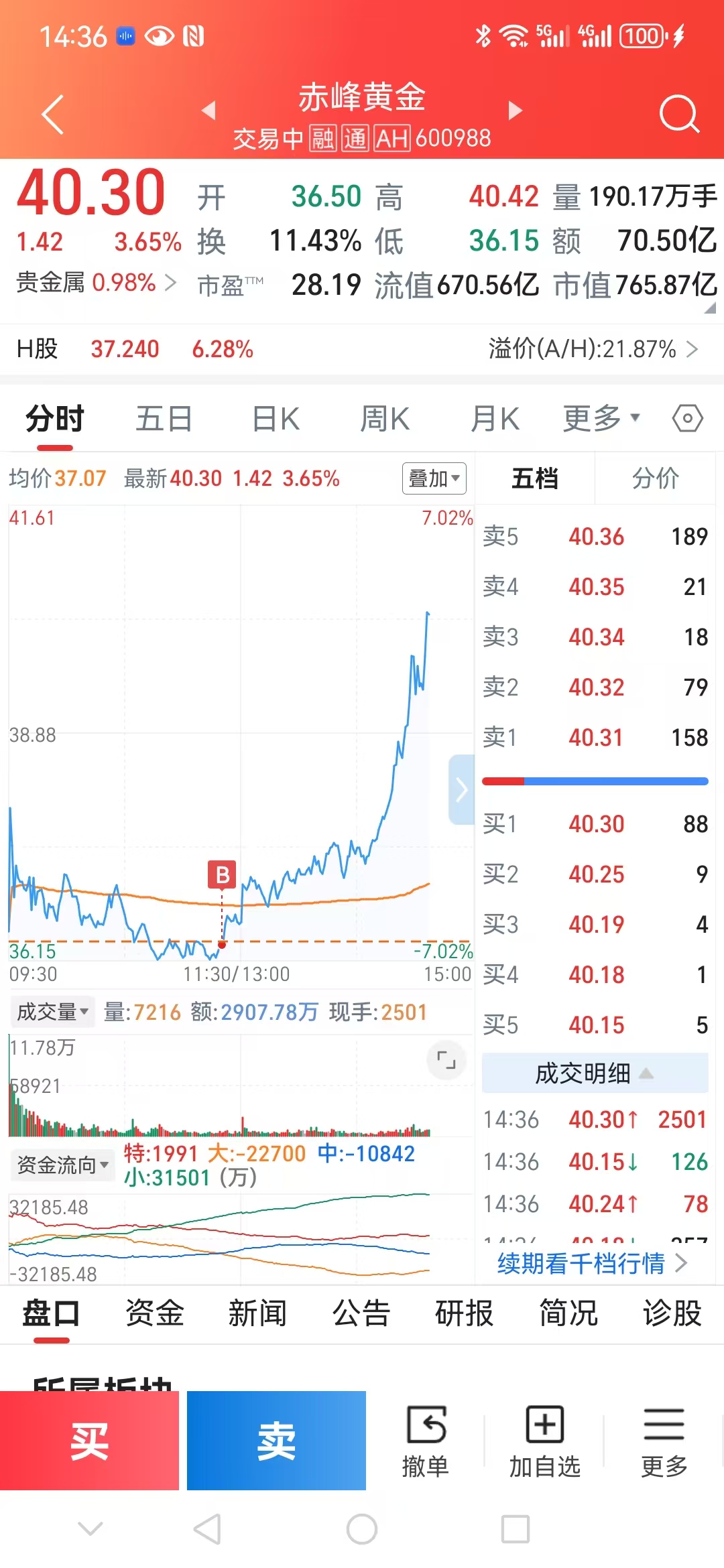 今天冲高减仓了神剑股份,看大盘普涨,情绪高涨,顿时感觉到卖飞了,此时再追神剑又担心做倒T,各板块大致看了一下,发现白银黄金跌得最凶,白银杀跌没有开板的迹象,黄金还有活口,西部和赤峰当时正在深水区奋力挣扎,换手承接都还好,于是-6和-9的位置分别搞了少量赤峰和西部。后面想想春节临近,婚庆喜事多,哪家还不买点金银珠宝啊,于是又水下搞了一丢丢萃华珠宝和莱绅通灵。主要还是看他们近期急跌,幅度较大,思路是搏超跌反弹。