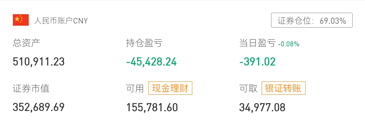 持仓小幅波动,资产稳健配置,理财灵活可取,盈亏平衡可控。