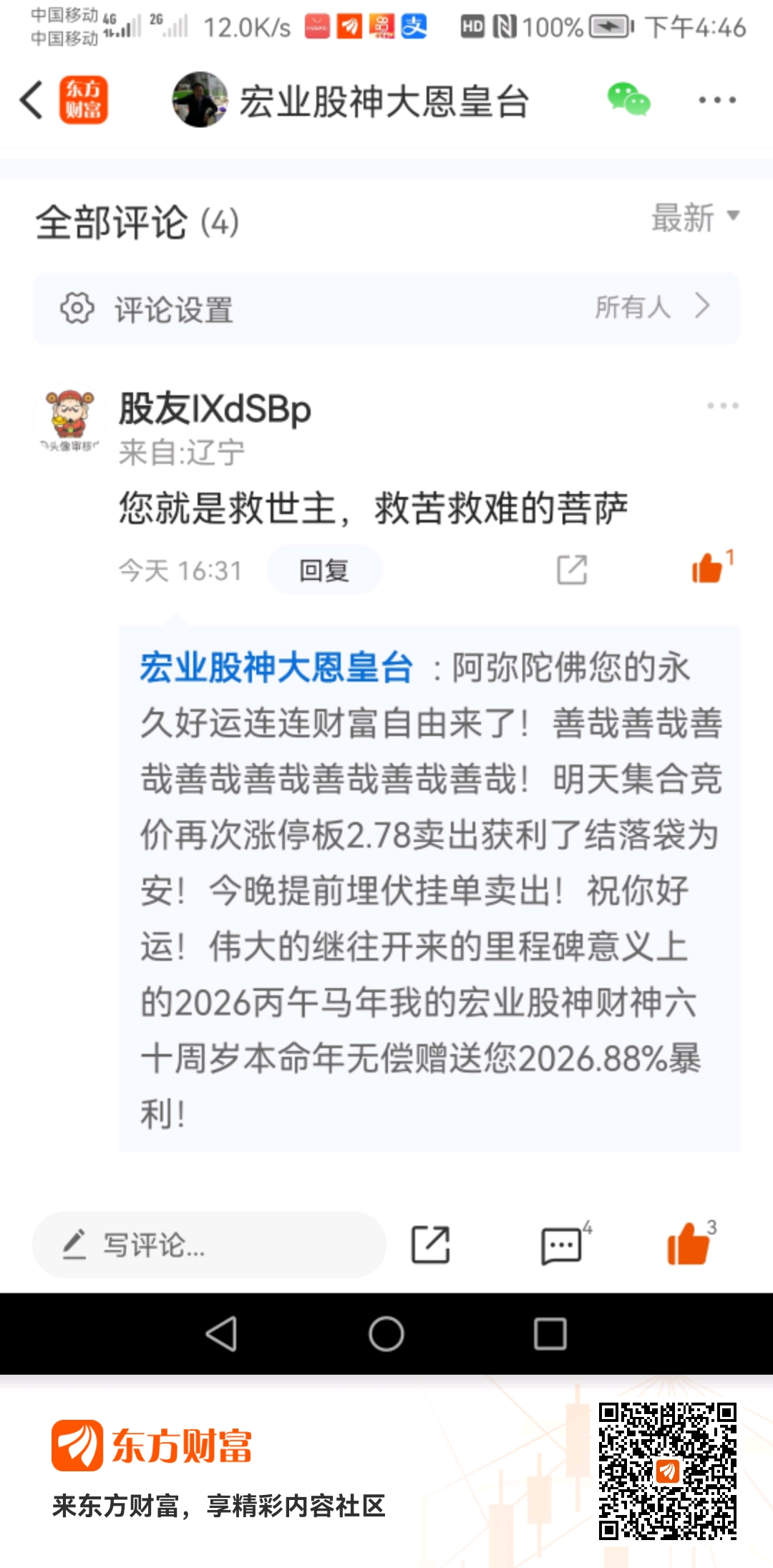 温馨提示: 1.根据《证券法》规定,禁止编造、传播虚假信息或者误导性信息,扰乱证券市场;2.用户在本社区发表的所有资料、言论等仅代表个人观点,与本网站立场无关,不对您构成任何投资建议。用户应基于自己的独立判断,自行决定证券投资并承担相应风险。《东方财富社区管理规定》