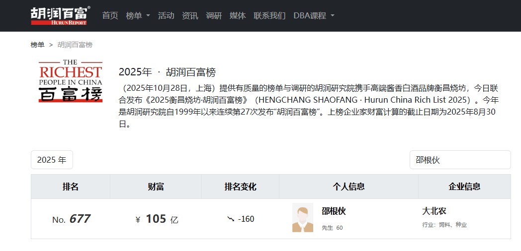 2025年三季报显示,截至报告期末,邵根伙以22.73%的持股比例稳坐第一大股东、实控人的位置,持股数量9.77亿股,其中有5.00亿股处于质押状态。2025年,邵根伙凭借105亿元的身家登上《胡润百富榜》,排名第677位,较2024年下降160位。