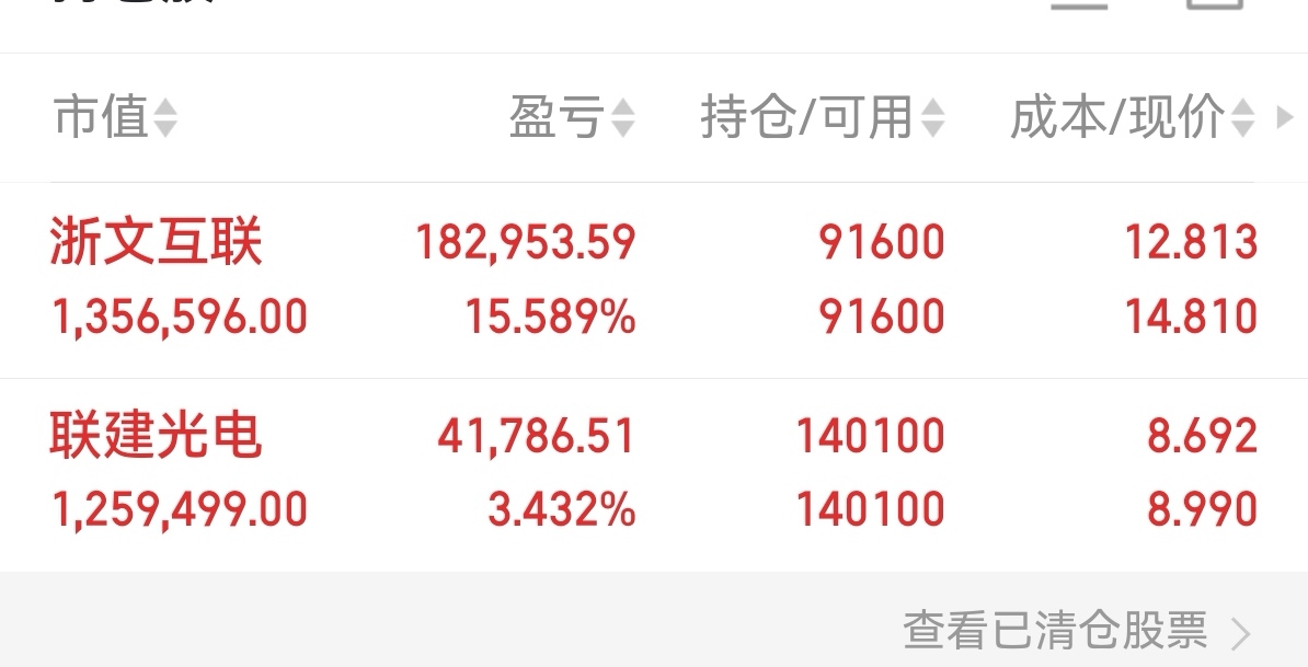 今天有事请假了,各位兄弟姐妹理解下持:浙文互联,联建光电每日实盘记录,用行动证明