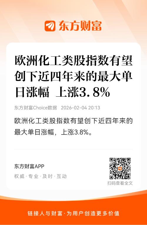 欧洲化工类股指数有望创下近四年来的最大单日涨幅,上涨3.8%。