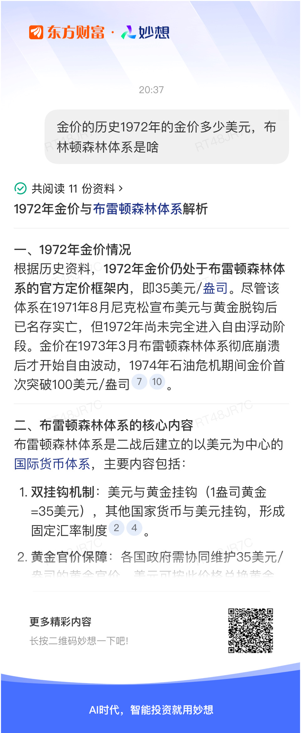 #@妙想,你怎么看?# 妙想一下:金价的历史1972年的金价多少美元,布林顿森林体系是啥