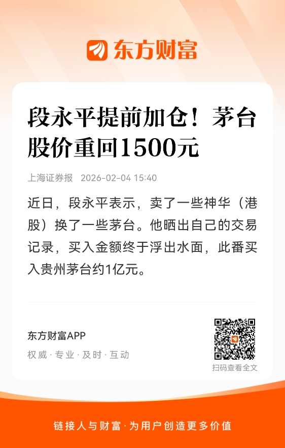 从段永平晒出的交易记录来看,1月27日,他卖出中国神华港股150万股,合计近6500万港元。同日,段永平多次买入贵州茅台,合计买入7.72万股,耗资约1.03亿元。