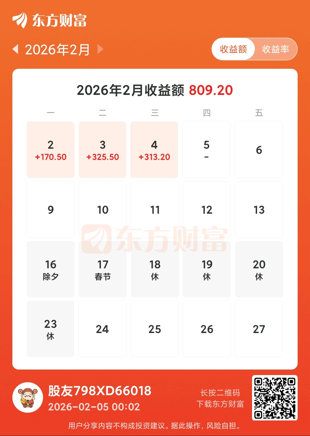 今天赚313.20元
