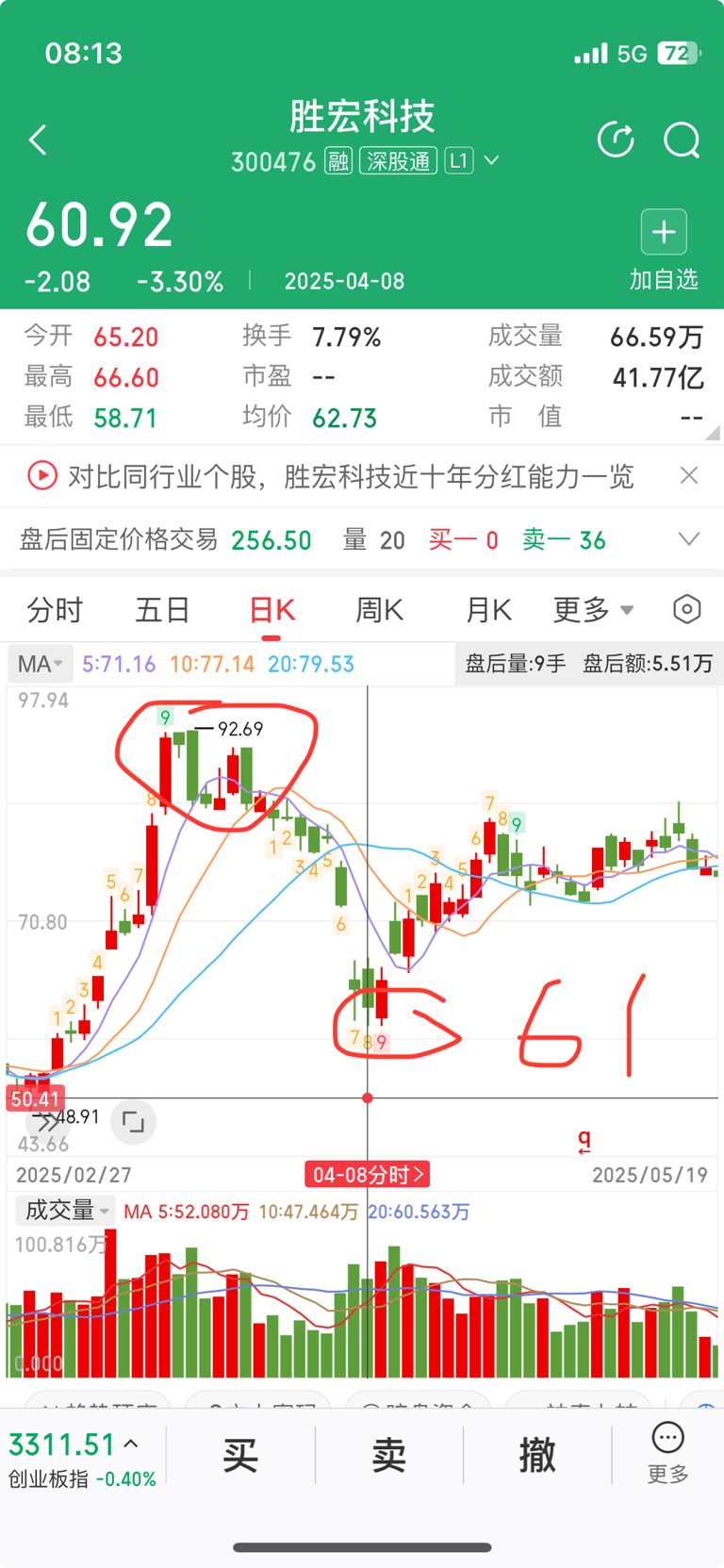 极限位62,不知道随时会发生什么,我选择坚守,暂时不再加仓,等趋缓或急拉再参与做t,短线客建议离开,短线客绝对无法忍受这般颠簸。