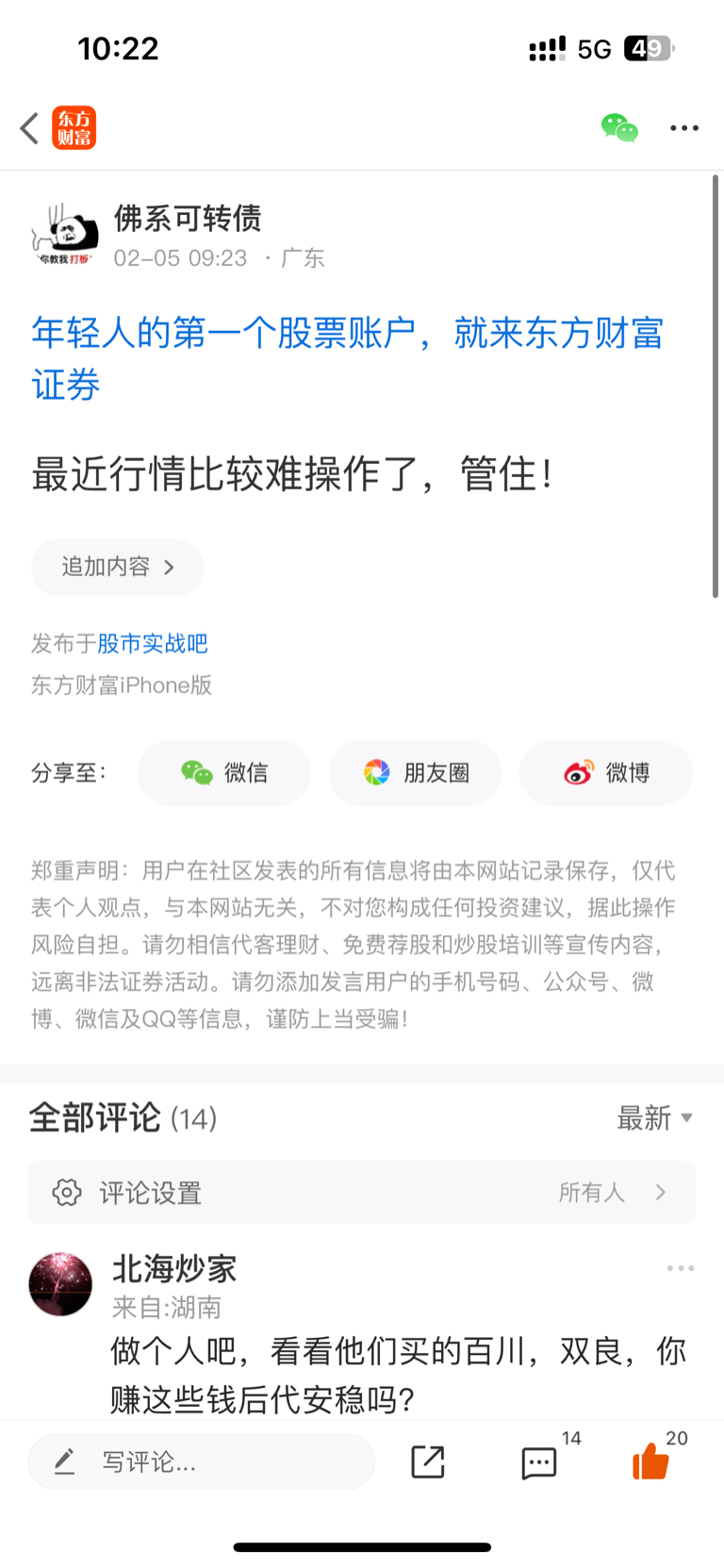 温馨提示: 1.根据《证券法》规定,禁止编造、传播虚假信息或者误导性信息,扰乱证券市场;2.用户在本社区发表的所有资料、言论等仅代表个人观点,与本网站立场无关,不对您构成任何投资建议。用户应基于自己的独立判断,自行决定证券投资并承担相应风险。《东方财富社区管理规定》