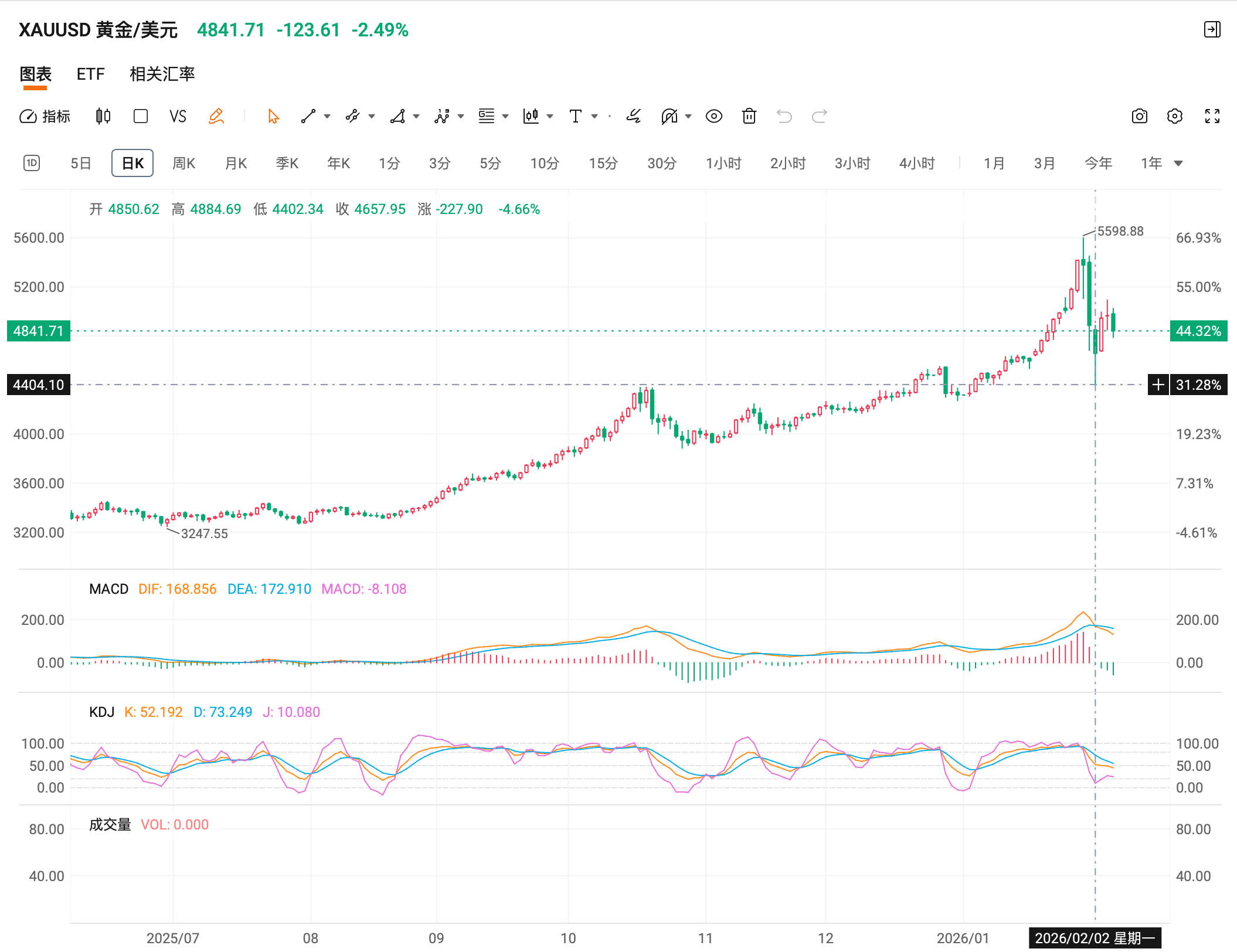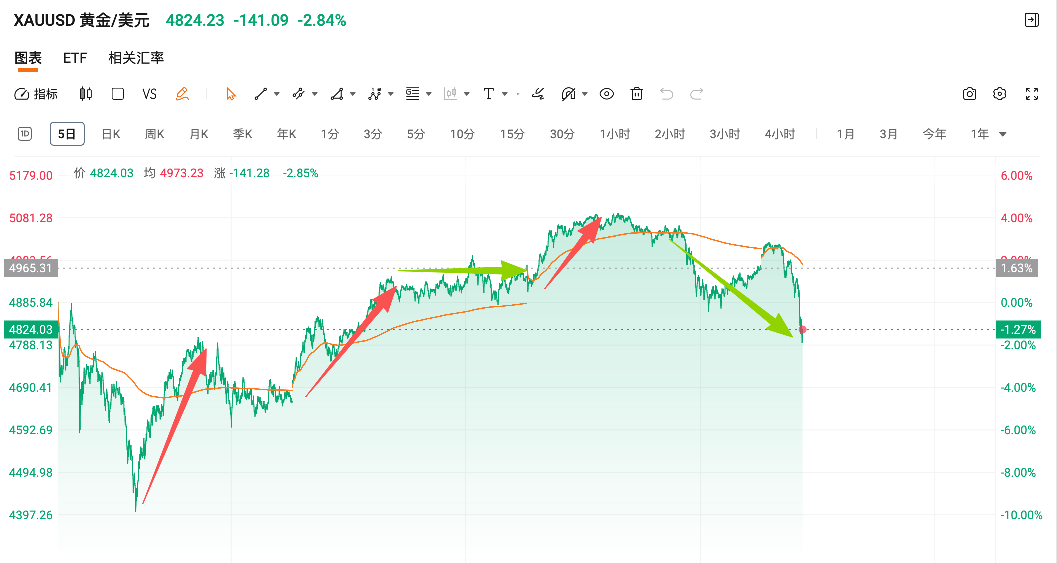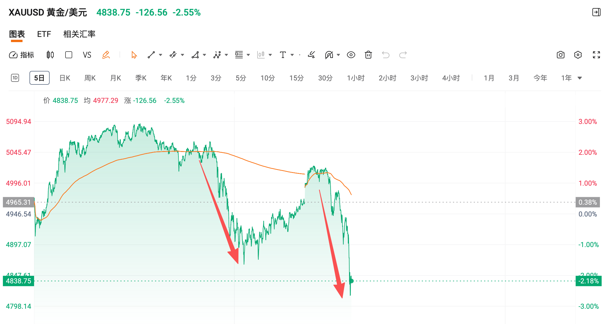 黄金现货一度跌至4800美元附近,白银期货跌至75美元,逼近前低