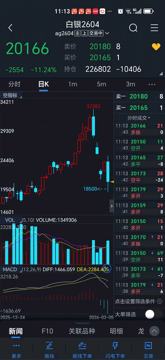#股市怎么看# 地狱还有十八层!又一批抄底客倒在了半山腰,沪银近几天的走势,一会把人送上天堂,一会把人送,前几天连续涨停,昨日又暴力拉升,一批高呼底来了,冲进去抄底,结果,你认为是底,却仍然在半山腰,接手的不是白花花的银子,而是飞过来的刀。今天上午,沪银主力合约2604盘中就暴跌18%多,又把一批急于抄底的多头打爆。看来,让子弹飞一会儿在期货交易中也非常有智慧。