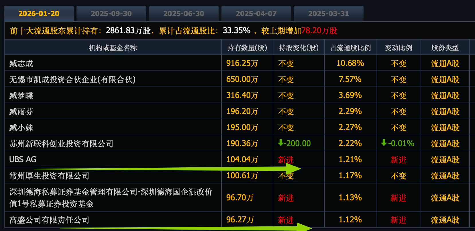 凯龙高科,高盛刚刚新进96万股,瑞银刚刚新进104万股。