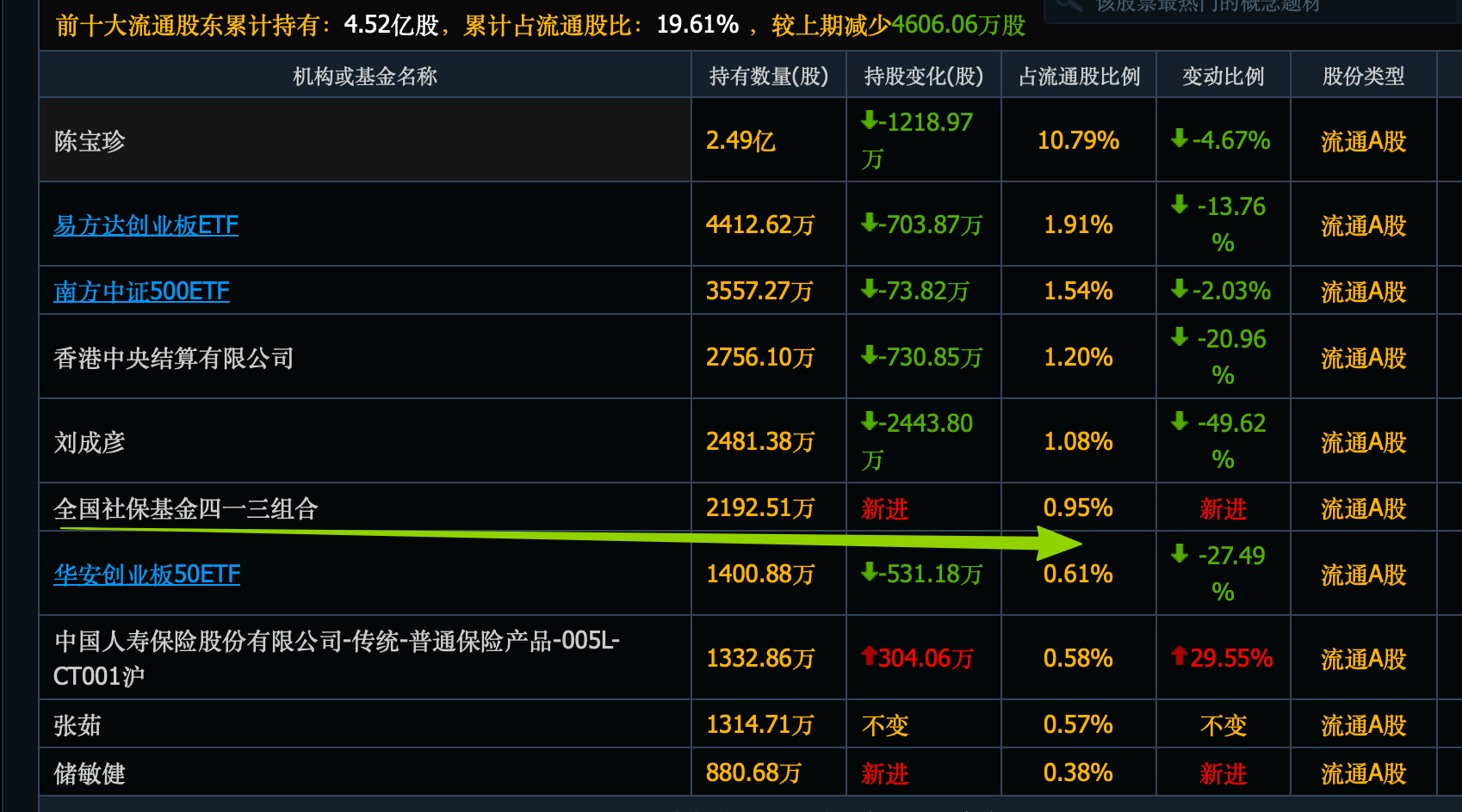 网宿科技,社保基金刚刚新进2192万股,位列第6大股东。