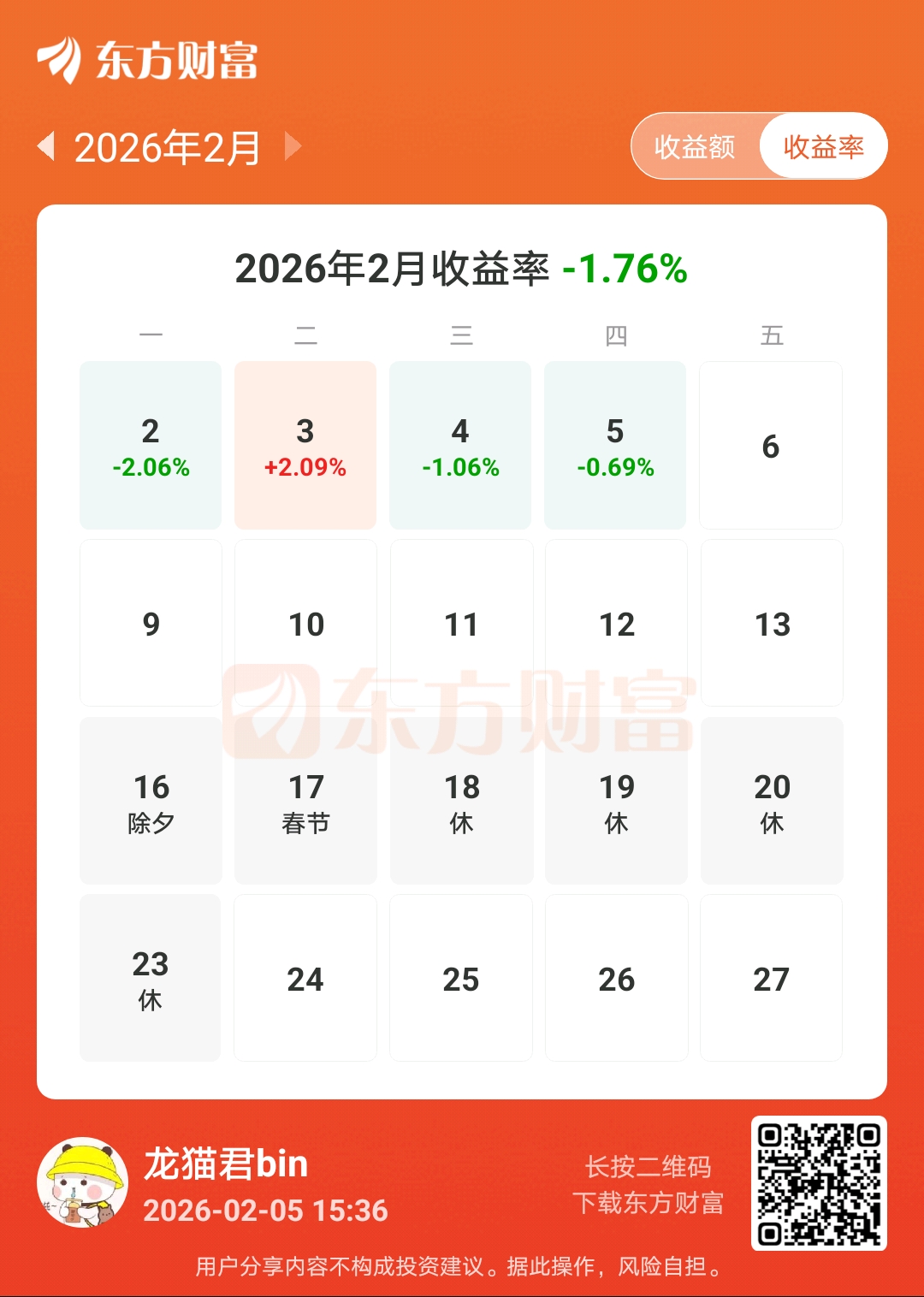 2026年2月5日,收益率-0.69%