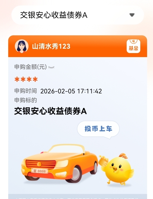 该基金业绩不错,长期值得定投挺不错的,逢低吸点。$交银安心收益债券A$