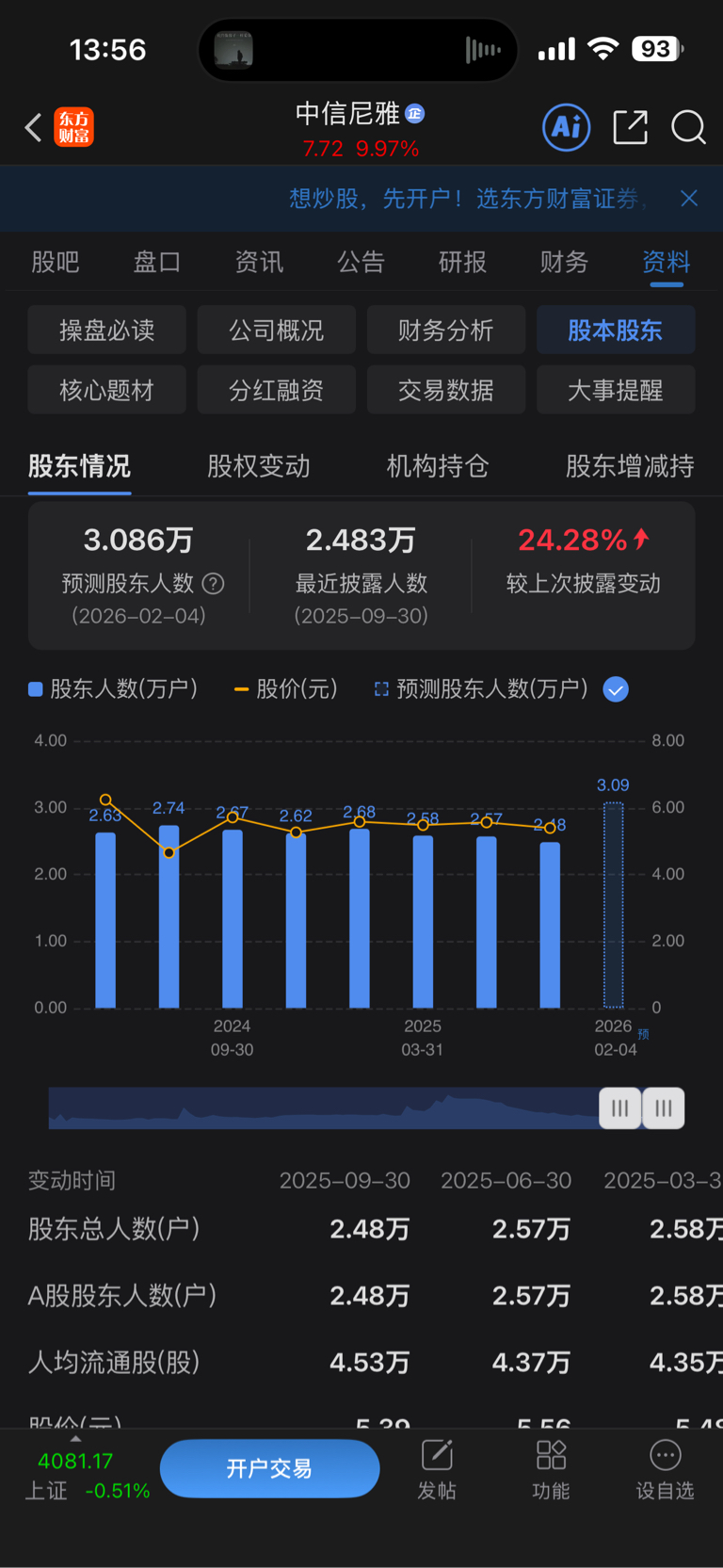 中信尼雅短期内股东数量突然大增24.28%,增长6000多户。今日主力净流入6011万,最高封单达40.4万手。近期本人贴吧说过:青海锂业高管出身的柯超到尼雅任总经理后,中信尼雅第二主业,即资产重组预期终于揭开谜底。中信集团总部、国安实业集团总部、中信尼雅、国安股份、白银有色、国安一城等全中信体系员工,和大A中机构、游资、散户等都将非常关注中信尼雅,有洞察力的投资人会快速集中涌入尼雅抢购股票。从6天三板一大阳走势看,预估新来4-5亿资金来抢筹尼雅还是太保守了。还是那句话:股价无所谓,筹码最珍贵,何以解忧,唯有尼雅!(本人所有吧贴仅为个人观点,不构成任何股票投资建议,不喜勿喷)