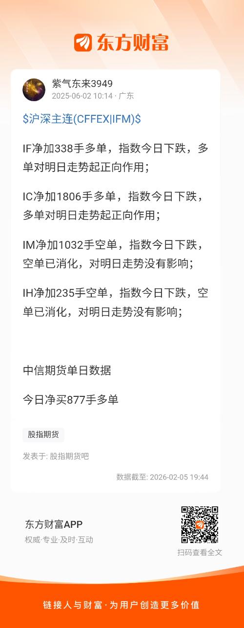 IM净加1032手空单,指数今日下跌,空单已消化,对明日走势没有影响;