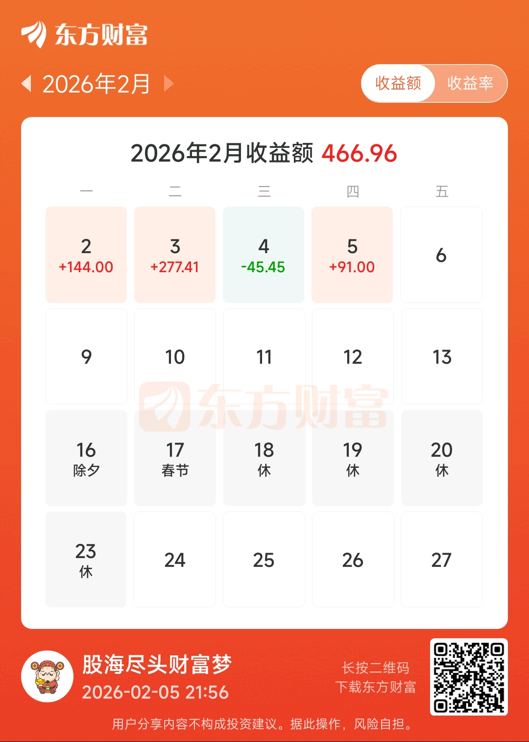 郑重声明:用户在财富号/股吧/博客等社区发表的所有信息(包括但不限于文字、视频、音频、数据及图表)仅代表个人观点,与本网站立场无关,不对您构成任何投资建议,据此操作风险自担。请勿相信代客理财、免费荐股和炒股培训等宣传内容,远离非法证券活动。请勿添加发言用户的手机号码、公众号、微博、微信及QQ等信息,谨防上当受骗!