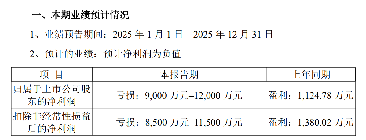 烽火电子,这个股票2025年亏损了1.3亿到2.5亿元。