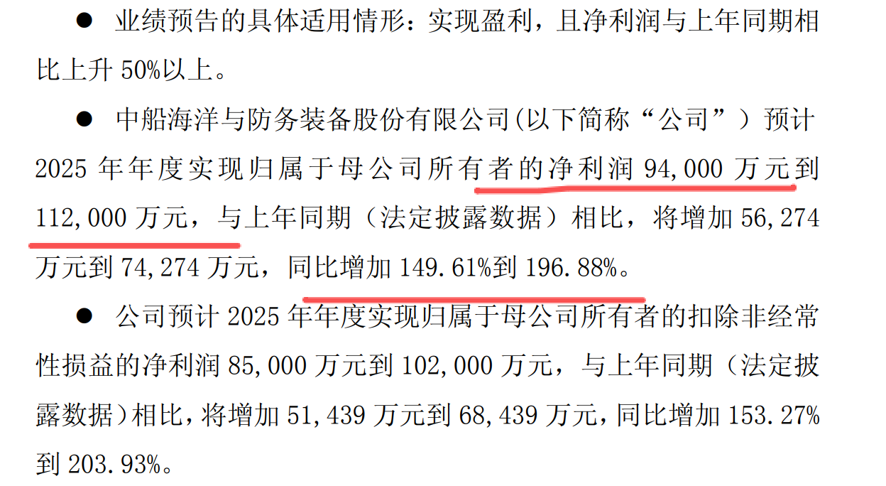 中船防务,这个股票2025年净利润增长150%到197%,净利润达到9.4亿到11.2亿元。