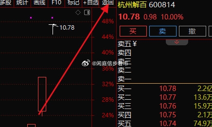 昨日布局一进二,解百雄风封涨停。