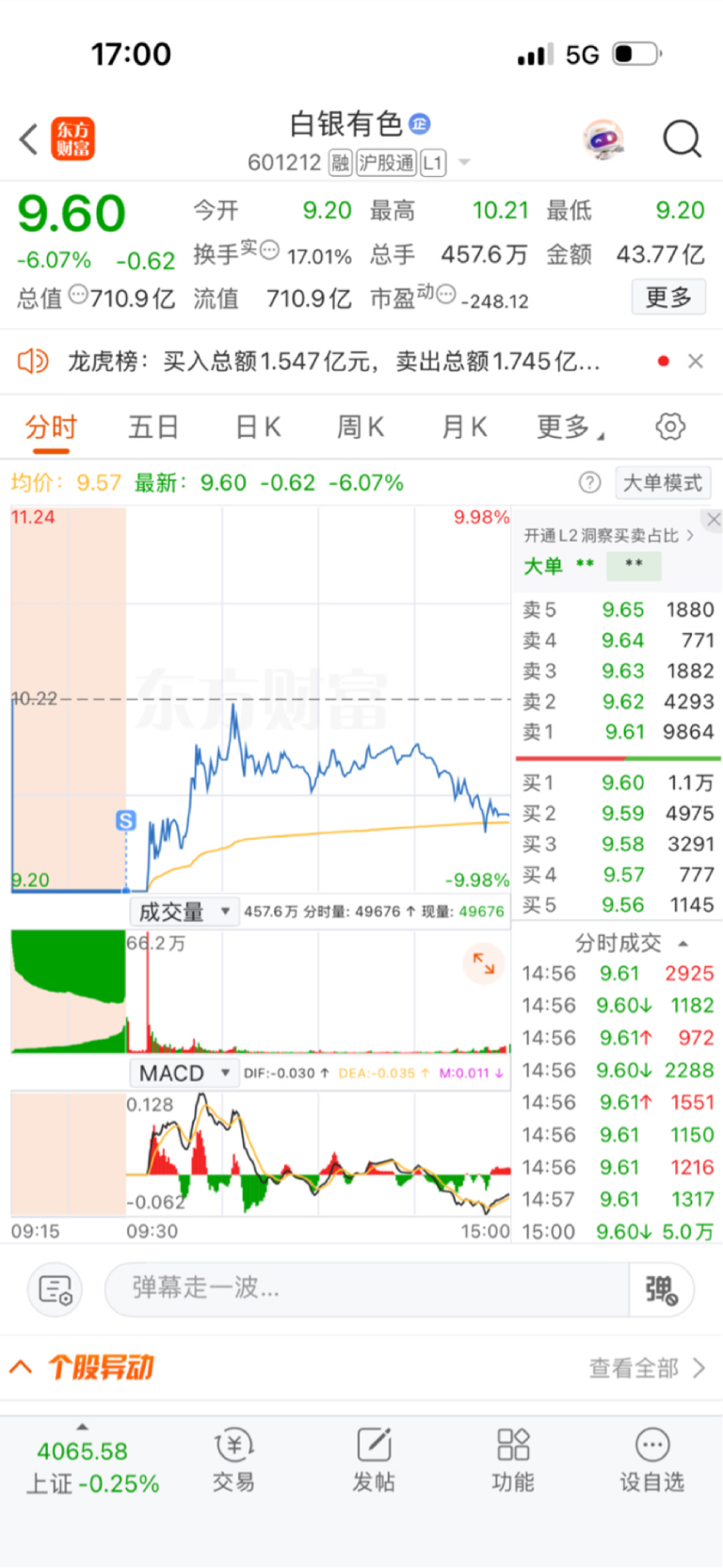 隔夜单,跌停把白银YS全部清仓,暂时不看金属板块。除非下周板块持续回暖,感觉风险还是蛮大。