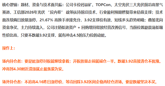 集合竞价冲高回落,4.01的位置低开,随后股价再次下滑到3.80的位置区间企稳反弹,并且伴随放量走强。我已经说过只要能再3.92的位置区间企稳那么就直接进场无需多言,那么有跟着我一起进场的朋友恭喜你们,今天的收益是对你们信任和执行力最好的回报。
