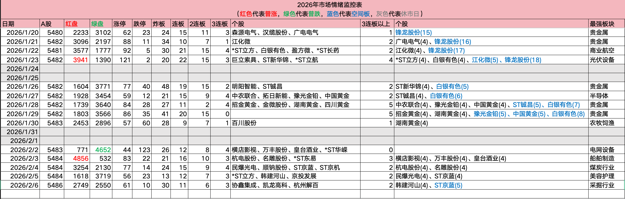 2026-02-06日市场情绪监控情况