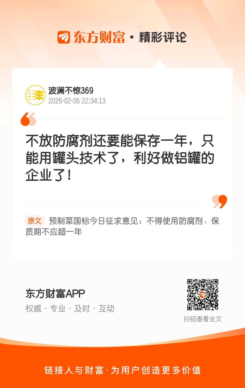 预制菜保质期最长不应超过12个月