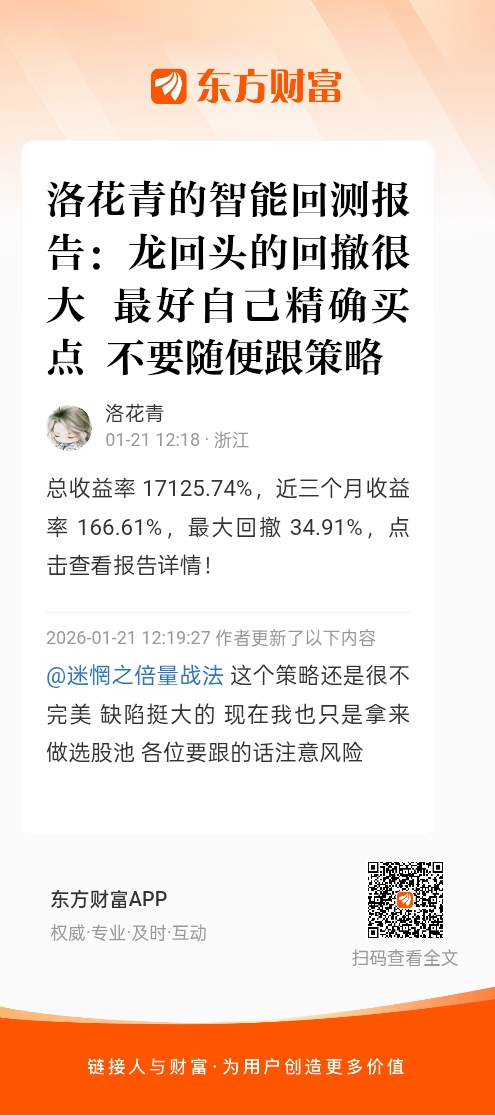 总收益率 17125.74%,近三个月收益率 166.61%,最大回撤 34.91%,点击查看报告详情!