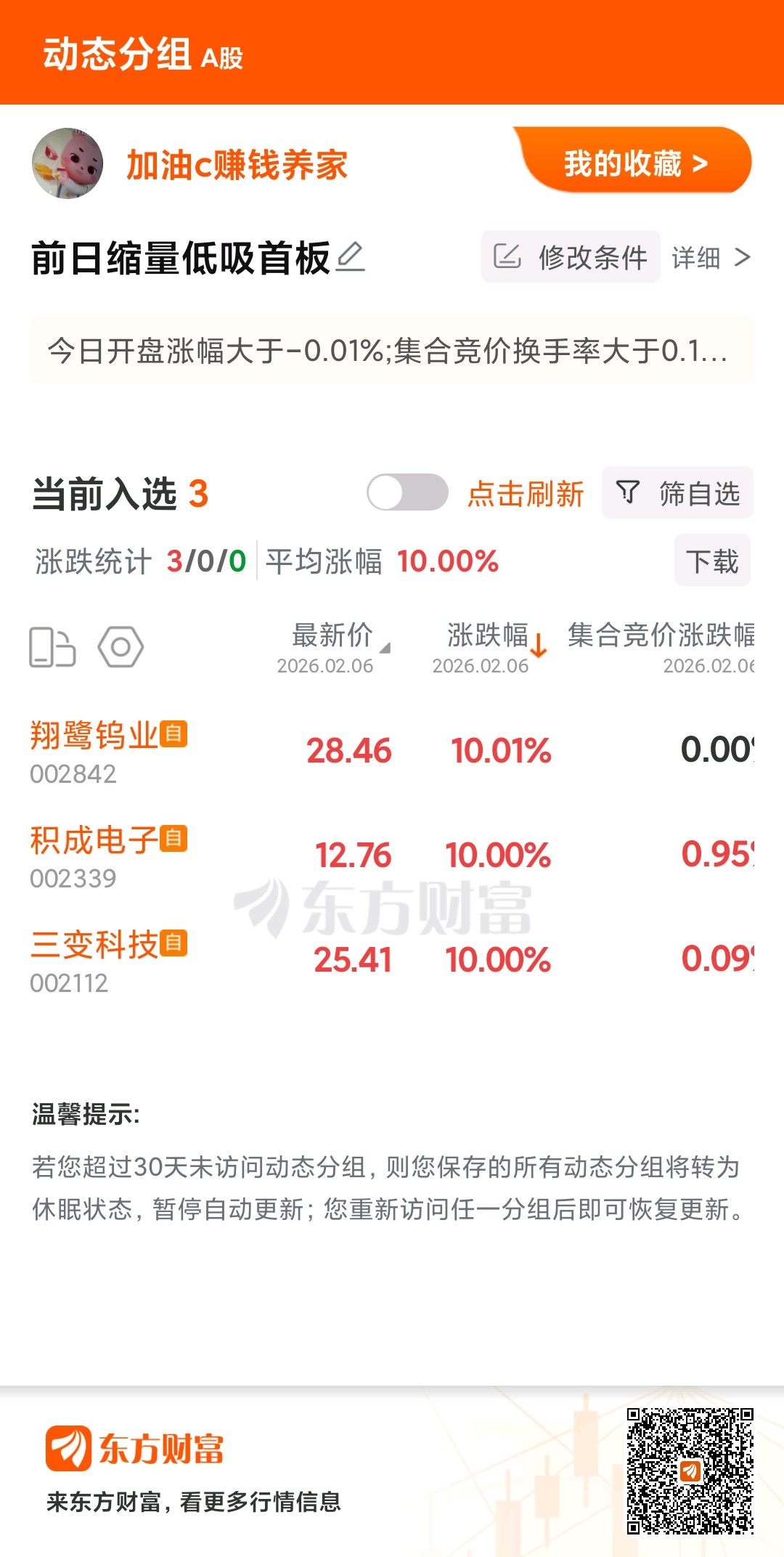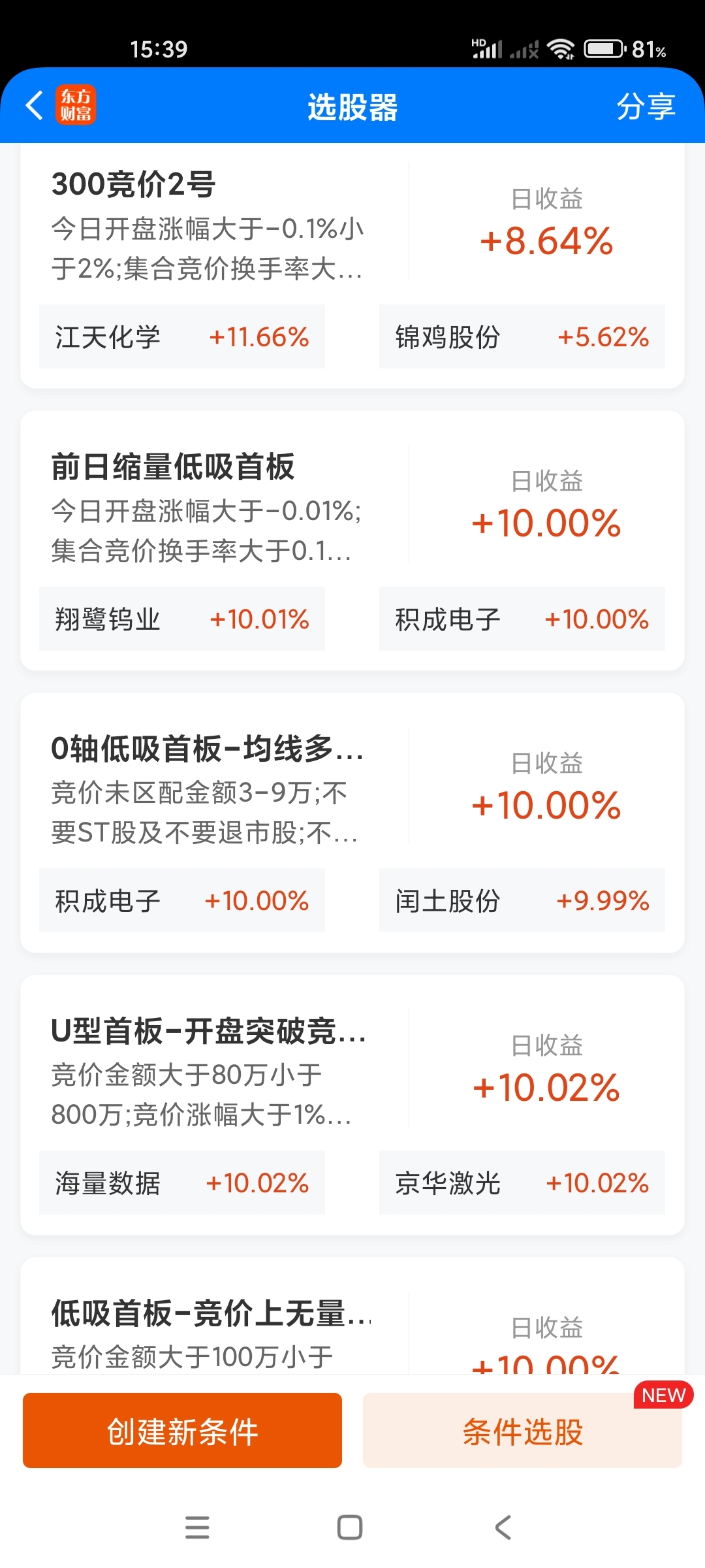 #炒股日记# 最近做了几个集合竞价9.25-9.30条件选股,验证中.......