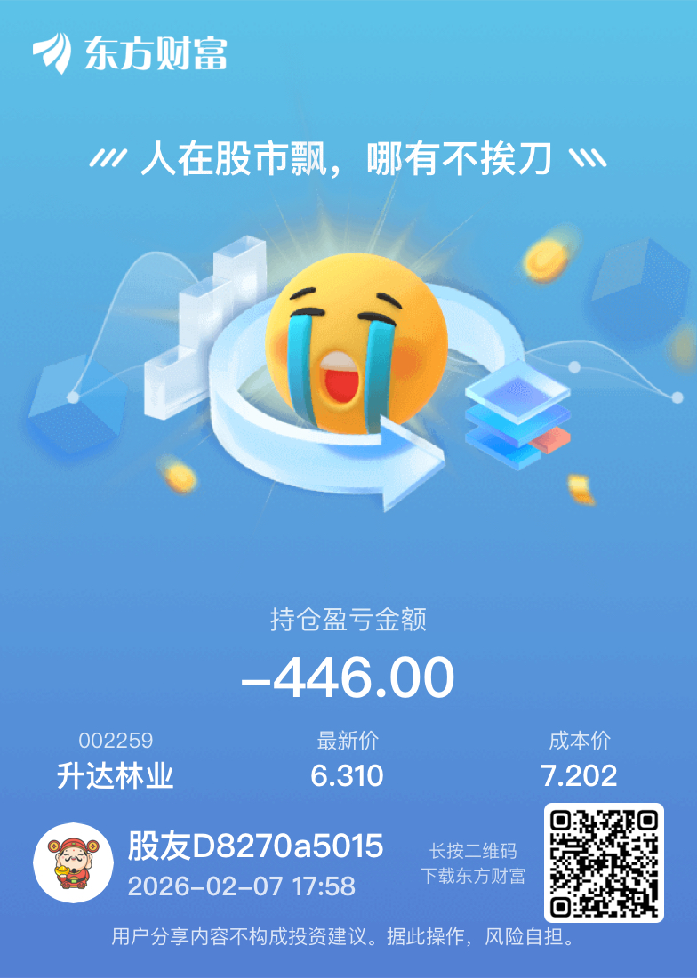 温馨提示: 1.根据《证券法》规定,禁止编造、传播虚假信息或者误导性信息,扰乱证券市场;2.用户在本社区发表的所有资料、言论等仅代表个人观点,与本网站立场无关,不对您构成任何投资建议。用户应基于自己的独立判断,自行决定证券投资并承担相应风险。《东方财富社区管理规定》