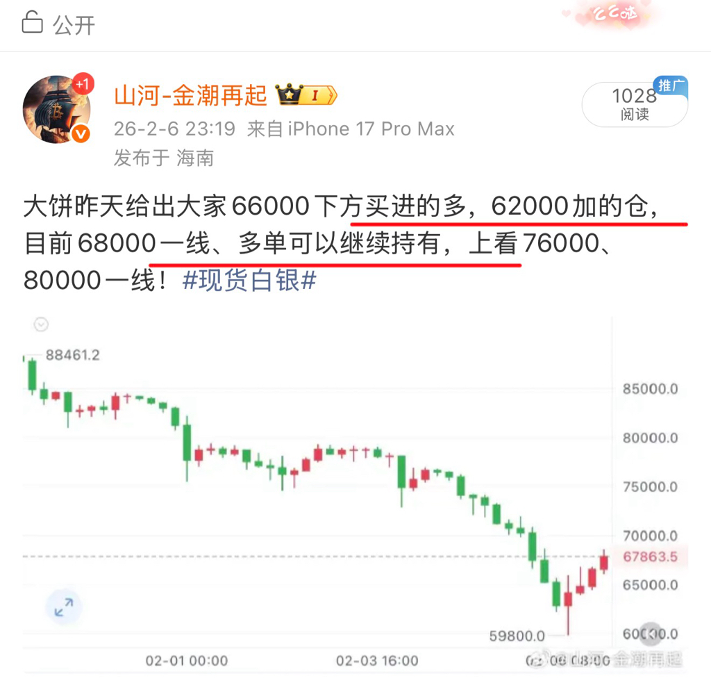 前天已经跟大家明确过比特抄底思路,本次布局以现货为主,在66000—62000区间分批进场。