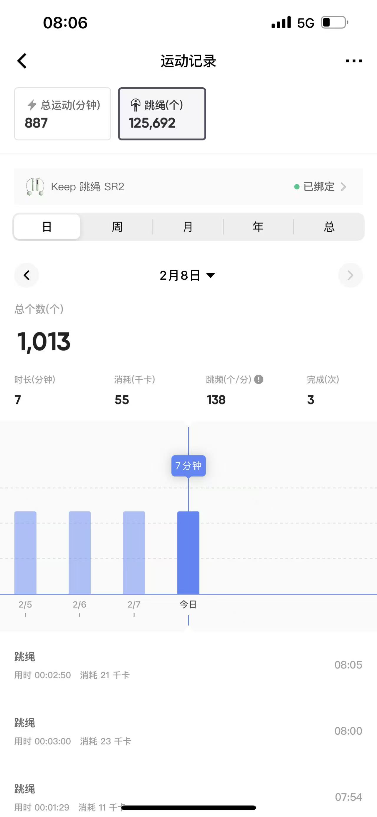 运动与投资第454天2026年2月8日今日定投:周末没有定投跳绳:1000个,累