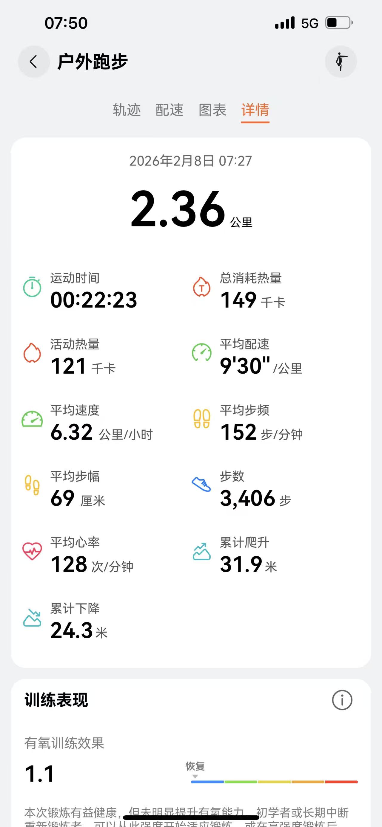 慢跑:2.36公里,累计慢跑:1311.87公里