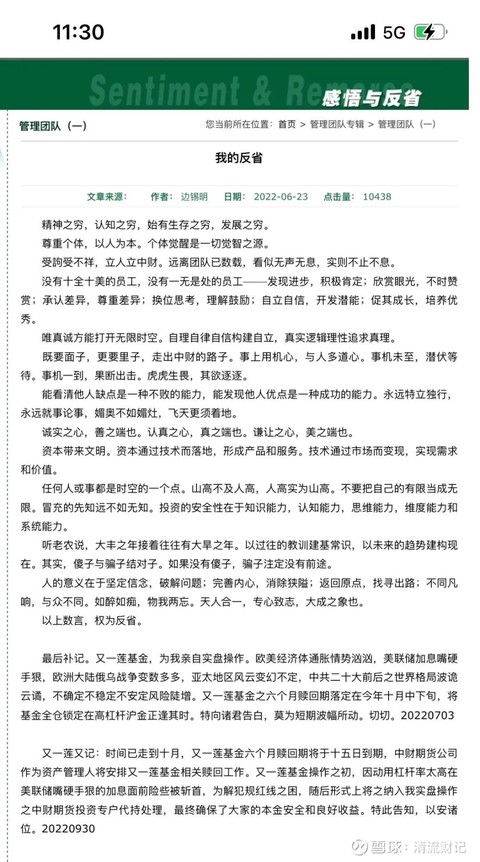 这个理由与巴菲特定居奥马哈如出一辙——远离金融中心的浮华与噪音,才能在市场狂热或恐慌时保持清醒。边锡明还是一位善于自我反思的投资者。2016年,他写下了《我的反省》,其中许多观点至今仍具有深刻的启示意义: