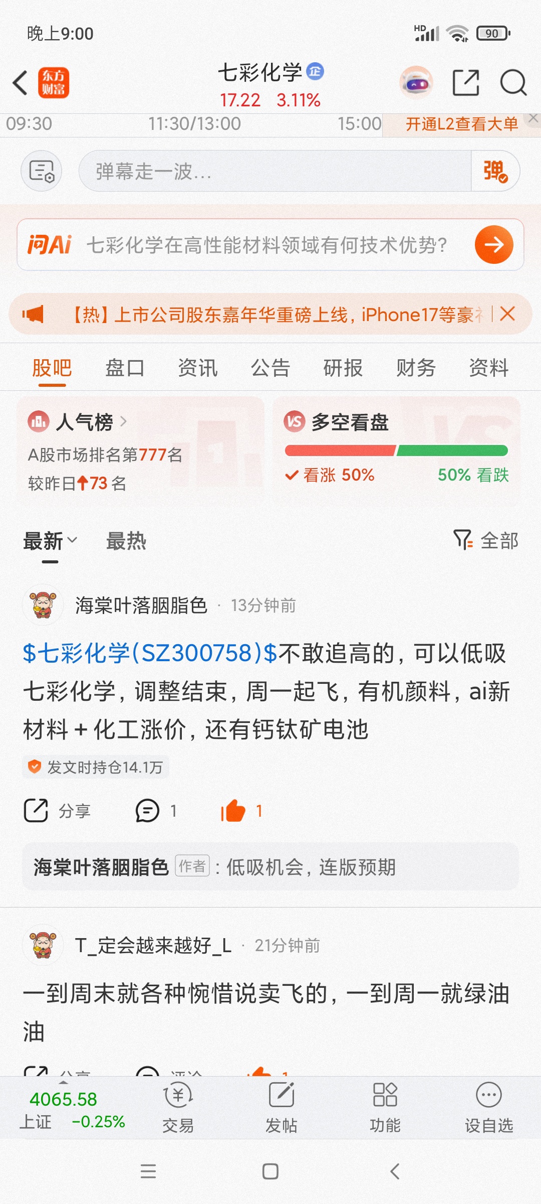 温馨提示: 1.根据《证券法》规定,禁止编造、传播虚假信息或者误导性信息,扰乱证券市场;2.用户在本社区发表的所有资料、言论等仅代表个人观点,与本网站立场无关,不对您构成任何投资建议。用户应基于自己的独立判断,自行决定证券投资并承担相应风险。《东方财富社区管理规定》